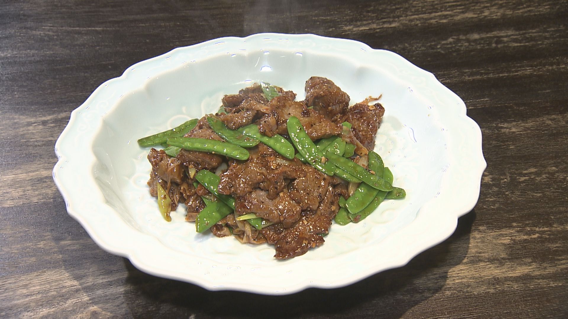 「黒椒荷蘭豆牛肉(ヘイジャオハーランドウニウロウ)」